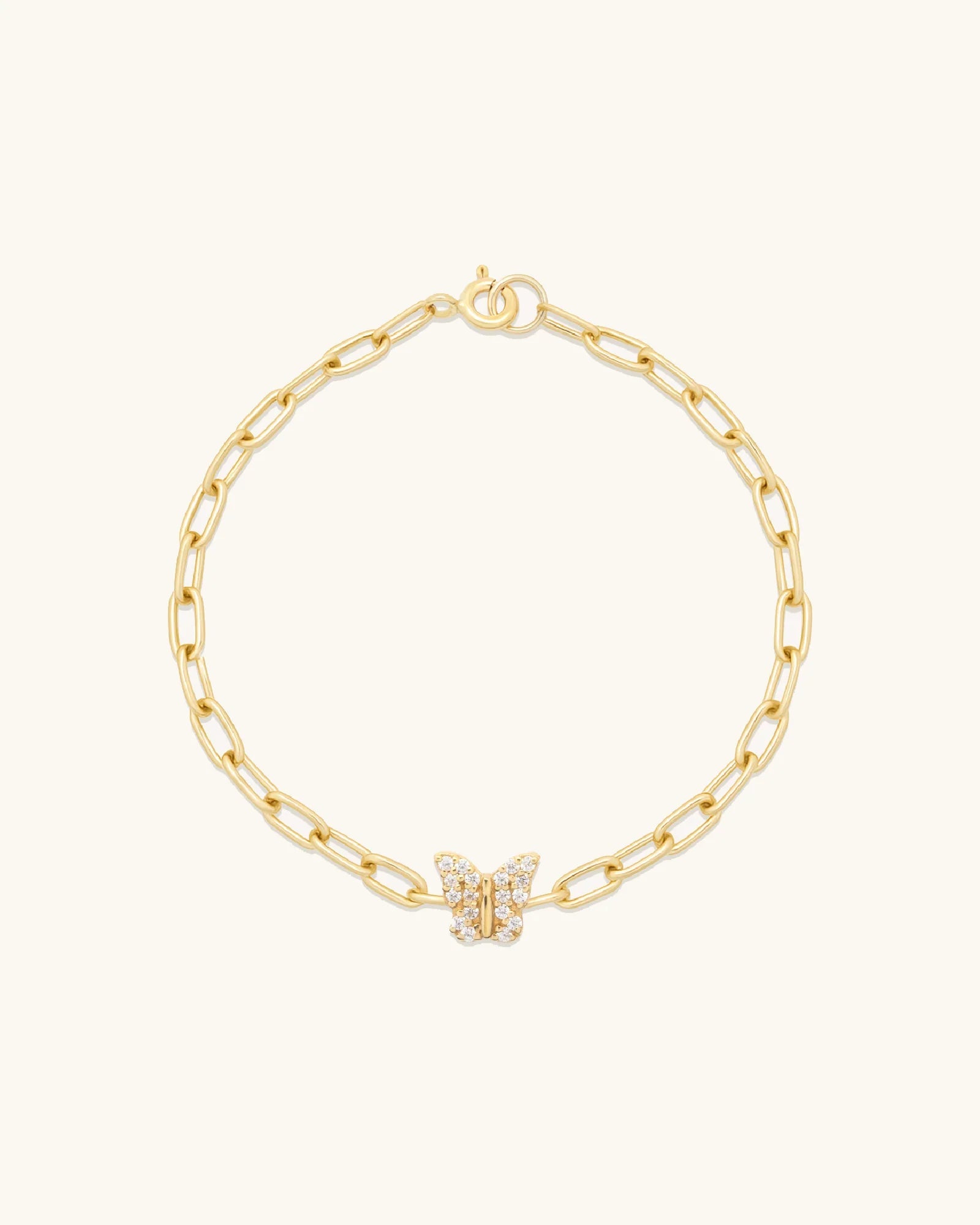 The Butterfly Pavé Bracelet brings a whimsical touch with radiant stones that shimmer with every move.