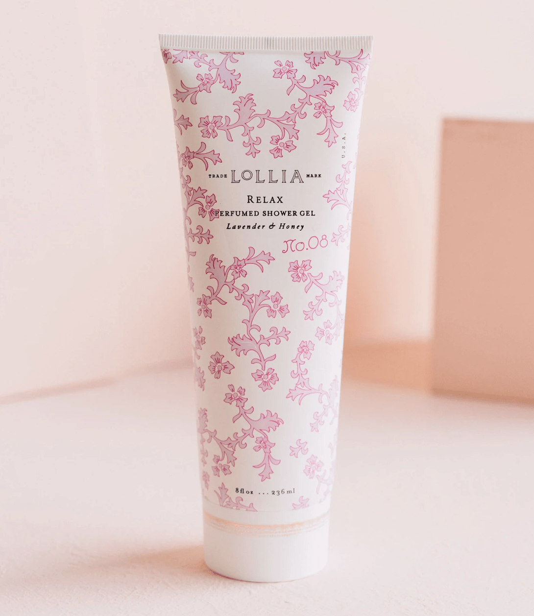 This moisturizing shower gel has a base of shea butter and jojoba oil. It has a soft scent of lavender and honey blossom with a hint of orchid, amber and vanilla.