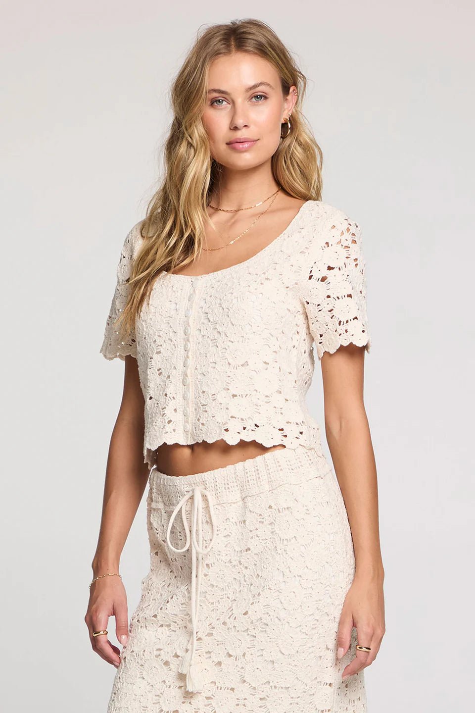 This bohemian top features doily-inspired fabric, cut perfectly to create a flattering boxy fit. With a scooped neck and natural hue, it exudes elegance and charm